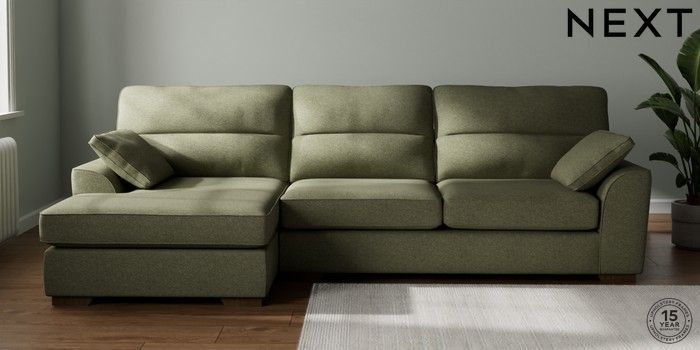 7.3.1 Buy Stamford Highback Large Sofa Chaise - Left Hand Tweedy Chenille Mid Moss Green Large Square Angle - Mid from the Seasons online shop Click here to use our website with more accessibility support, for example screen readers