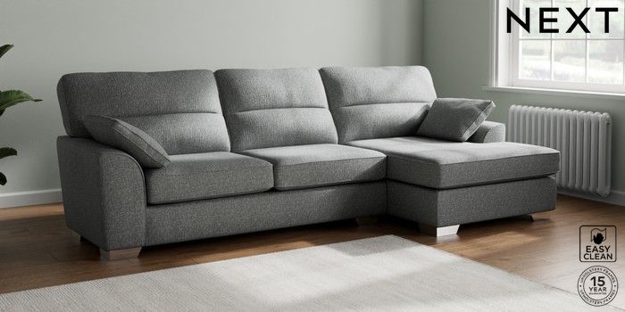 7.3.1 Buy Stamford Highback Large Sofa Chaise - Right Hand Chunky Boucle Easy Clean Mid Grey Large Square Angle - Chrome Metal from the Seasons online shop Click here to use our website with more accessibility support, for example screen readers