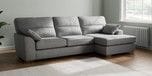 7.2.10 Buy Stamford Highback Large Sofa Chaise - Right Hand Chunky Weave Mid Grey Large Square Angle - Brushed Brass from the Seasons online shop Click here to use our website with more accessibility support, for example screen readers