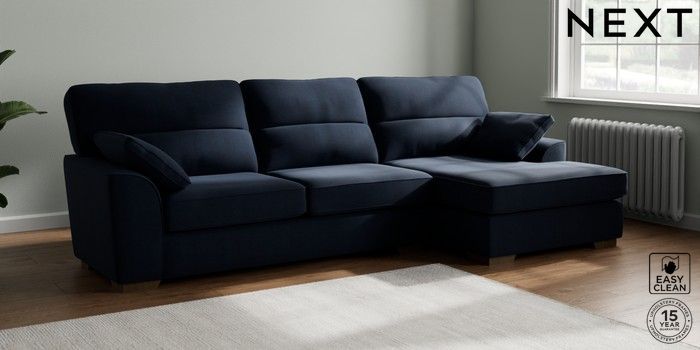 7.3.1 Buy Stamford Highback Large Sofa Chaise - Right Hand Fine Chenille Easy Clean Dark Navy Blue Large Square Angle - Mid from the Seasons online shop Click here to use our website with more accessibility support, for example screen readers