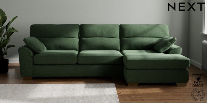 7.3.1 Buy Stamford Highback Large Sofa Chaise - Right Hand Fine Chenille Easy Clean Mid Khaki Green Large Square Angle - Brushed Brass from the Seasons online shop Click here to use our website with more accessibility support, for example screen readers