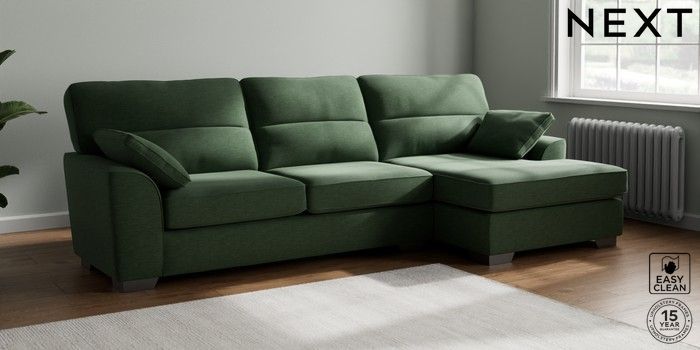 7.3.1 Buy Stamford Highback Large Sofa Chaise - Right Hand Fine Chenille Easy Clean Mid Khaki Green Large Square Angle - Gunmetal from the Seasons online shop Click here to use our website with more accessibility support, for example screen readers