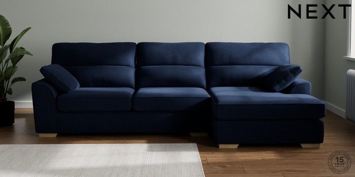 7.2.10 Buy Stamford Highback Large Sofa Chaise - Right Hand Luxe Chenille Navy Blue Large Square Angle - Light from the Seasons online shop Click here to use our website with more accessibility support, for example screen readers