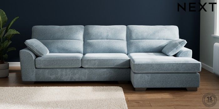 7.3.1 Buy Stamford Highback Large Sofa Chaise - Right Hand Plush Chenille Light Blue Large Square Angle - Gunmetal from the Seasons online shop Click here to use our website with more accessibility support, for example screen readers