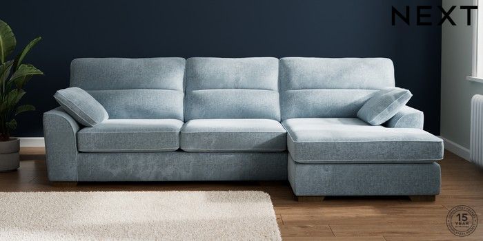 7.2.10 Buy Stamford Highback Large Sofa Chaise - Right Hand Plush Chenille Light Blue Large Square Angle - Mid from the Seasons online shop Click here to use our website with more accessibility support, for example screen readers
