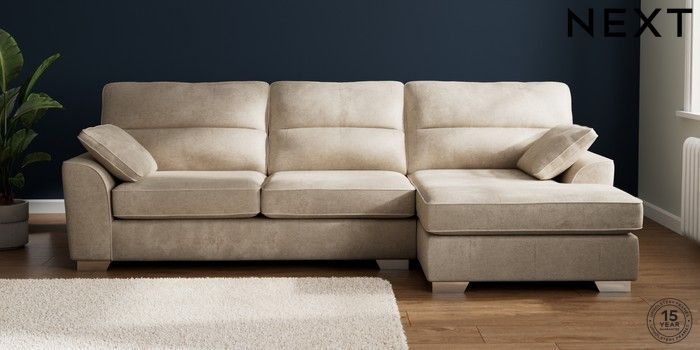 7.3.1 Buy Stamford Highback Large Sofa Chaise - Right Hand Plush Chenille Light Natural Large Square Angle - Chrome Metal from the Seasons online shop Click here to use our website with more accessibility support, for example screen readers