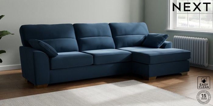 7.3.1 Buy Stamford Highback Large Sofa Chaise - Right Hand Plush Velvet Easy Clean Airforce Blue Large Square Angle - Brushed Brass from the Seasons online shop Click here to use our website with more accessibility support, for example screen readers