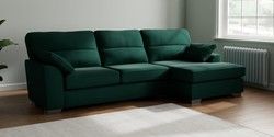 7.3.1 Buy Stamford Highback Large Sofa Chaise - Right Hand Plush Velvet Easy Clean Bottle Green Large Square Angle - Gunmetal from the Seasons online shop