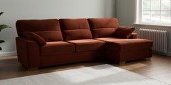7.3.1 Buy Stamford Highback Large Sofa Chaise - Right Hand Plush Velvet Easy Clean Ginger Orange Large Square Angle - Brushed Brass from the Seasons online shop Click here to use our website with more accessibility support, for example screen readers