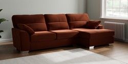 7.3.1 Buy Stamford Highback Large Sofa Chaise - Right Hand Plush Velvet Easy Clean Ginger Orange Large Square Angle - Chrome Metal from the Seasons online shop Click here to use our website with more accessibility support, for example screen readers