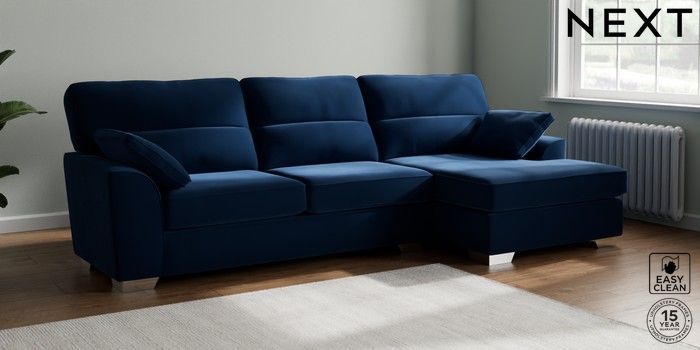 7.3.1 Buy Stamford Highback Large Sofa Chaise - Right Hand Plush Velvet Easy Clean Navy Blue Large Square Angle - Chrome Metal from the Seasons online shop Click here to use our website with more accessibility support, for example screen readers