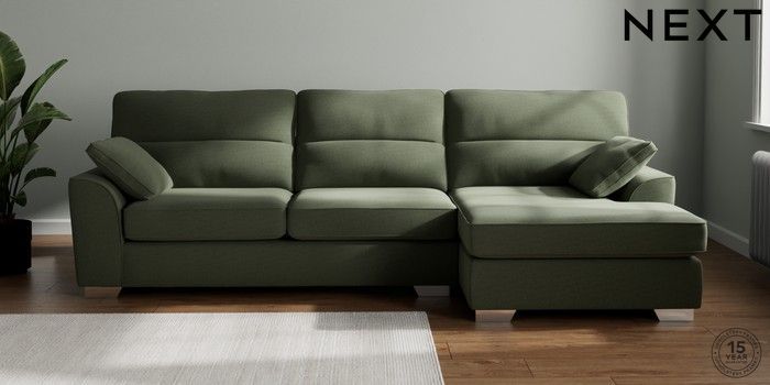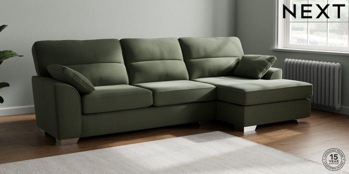 7.3.1 Buy Stamford Highback Large Sofa Chaise - Right Hand Relaxed Linen Look Dark Green Large Square Angle - Chrome Metal from the Seasons online shop Click here to use our website with more accessibility support, for example screen readers