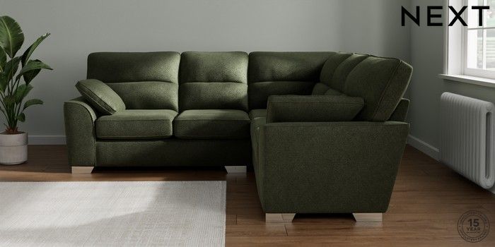 7.2.10 Buy Stamford Highback Medium Corner Sofa - Universal Boucle Chenille Dark Moss Green Large Square Angle - Chrome Metal from the Seasons online shop Click here to use our website with more accessibility support, for example screen readers
