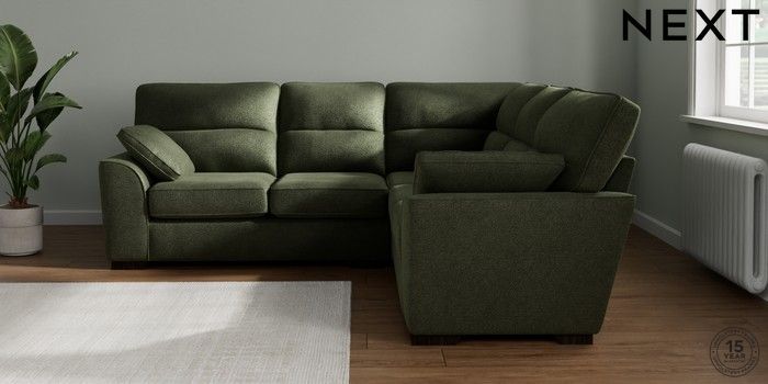 7.2.10 Buy Stamford Highback Medium Corner Sofa - Universal Boucle Chenille Dark Moss Green Large Square Angle - Dark from the Seasons online shop Click here to use our website with more accessibility support, for example screen readers