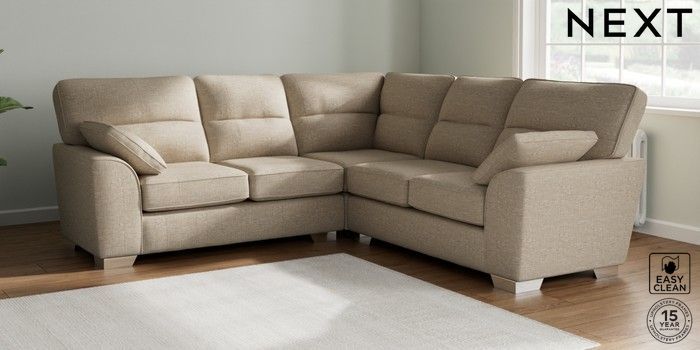 7.3.1 Buy Stamford Highback Medium Corner Sofa - Universal Boucle Weave Easy Clean Dark Natural Large Square Angle - Chrome Metal from the Seasons online shop Click here to use our website with more accessibility support, for example screen readers