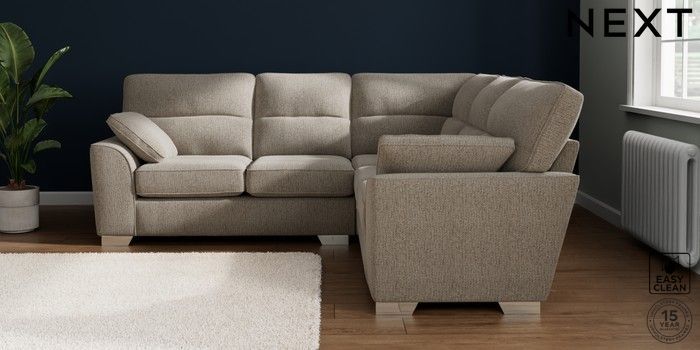 7.2.10 Buy Stamford Highback Medium Corner Sofa - Universal Chunky Boucle Easy Clean Dove Large Square Angle - Chrome Metal from the Seasons online shop Click here to use our website with more accessibility support, for example screen readers