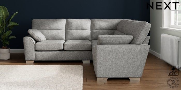 7.2.10 Buy Stamford Highback Medium Corner Sofa - Universal Chunky Boucle Easy Clean Light Grey Large Square Angle - Chrome Metal from the Seasons online shop Click here to use our website with more accessibility support, for example screen readers