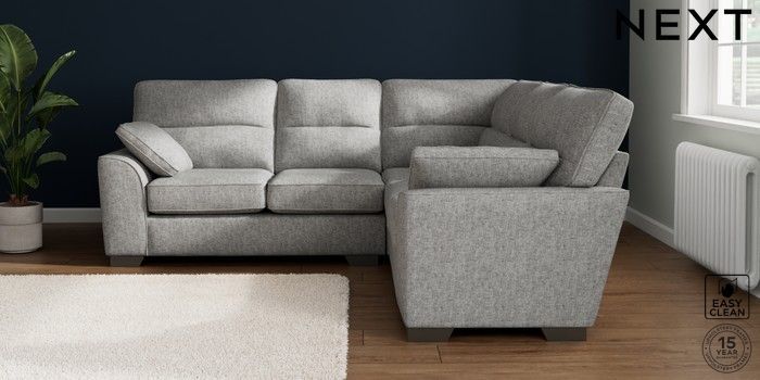 7.2.10 Buy Stamford Highback Medium Corner Sofa - Universal Chunky Boucle Easy Clean Light Grey Large Square Angle - Gunmetal from the Seasons online shop Click here to use our website with more accessibility support, for example screen readers