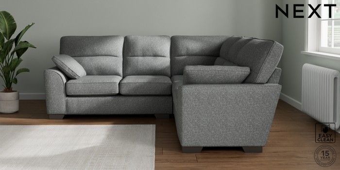 7.2.10 Buy Stamford Highback Medium Corner Sofa - Universal Chunky Boucle Easy Clean Mid Grey Large Square Angle - Gunmetal from the Seasons online shop Click here to use our website with more accessibility support, for example screen readers