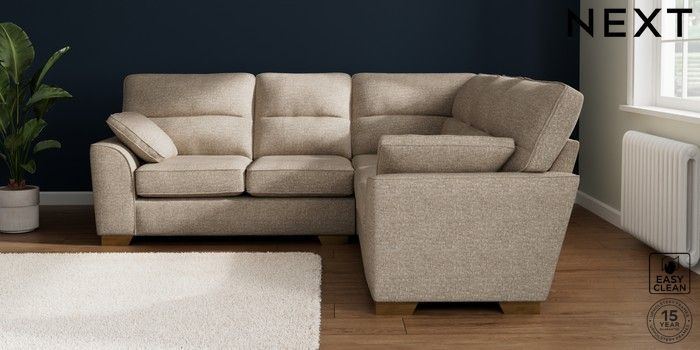 7.2.10 Buy Stamford Highback Medium Corner Sofa - Universal Chunky Boucle Easy Clean Mid Natural Large Square Angle - Brushed Brass from the Seasons online shop Click here to use our website with more accessibility support, for example screen readers