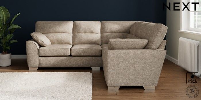 7.2.10 Buy Stamford Highback Medium Corner Sofa - Universal Chunky Boucle Easy Clean Mid Natural Large Square Angle - Chrome Metal from the Seasons online shop Click here to use our website with more accessibility support, for example screen readers