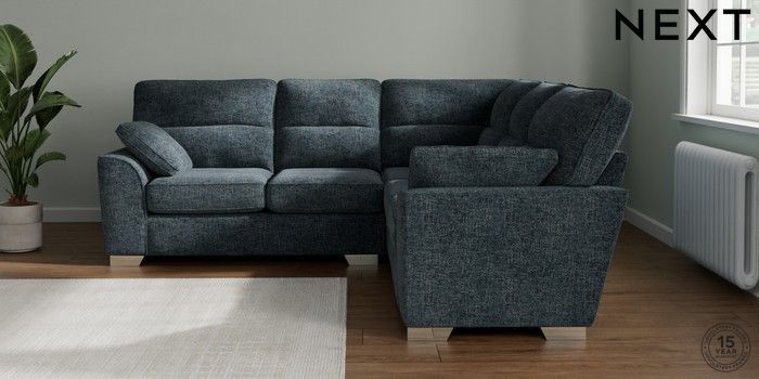 7.2.10 Buy Stamford Highback Medium Corner Sofa - Universal Chunky Chenille Dark Navy Blue Large Square Angle - Chrome Metal from the Seasons online shop Click here to use our website with more accessibility support, for example screen readers