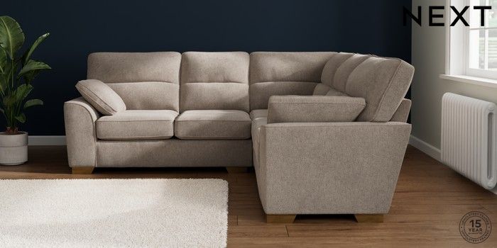 7.2.10 Buy Stamford Highback Medium Corner Sofa - Universal Chunky Chenille Light Dove Large Square Angle - Brushed Brass from the Seasons online shop Click here to use our website with more accessibility support, for example screen readers