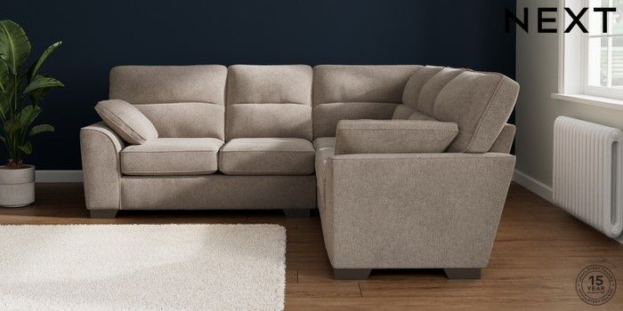 7.2.10 Buy Stamford Highback Medium Corner Sofa - Universal Chunky Chenille Light Dove Large Square Angle - Gunmetal from the Seasons online shop Click here to use our website with more accessibility support, for example screen readers