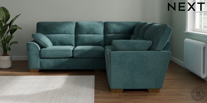 7.2.10 Buy Stamford Highback Medium Corner Sofa - Universal Chunky Chenille Mid Teal Green Large Square Angle - Brushed Brass from the Seasons online shop Click here to use our website with more accessibility support, for example screen readers
