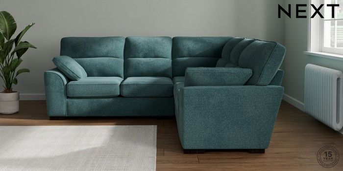 7.2.10 Buy Stamford Highback Medium Corner Sofa - Universal Chunky Chenille Mid Teal Green Large Square Angle - Dark from the Seasons online shop Click here to use our website with more accessibility support, for example screen readers