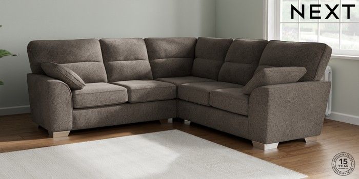 7.2.10 Buy Stamford Highback Medium Corner Sofa - Universal Chunky Chenille Mink Brown Large Square Angle - Chrome Metal from the Seasons online shop Click here to use our website with more accessibility support, for example screen readers
