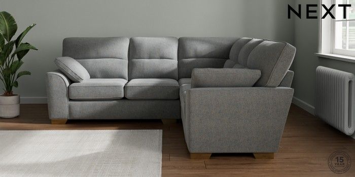 7.2.10 Buy Stamford Highback Medium Corner Sofa - Universal Chunky Marl Mid Grey Large Square Angle - Brushed Brass from the Seasons online shop Click here to use our website with more accessibility support, for example screen readers