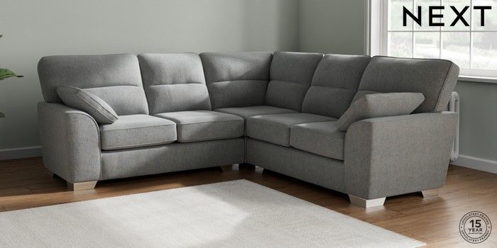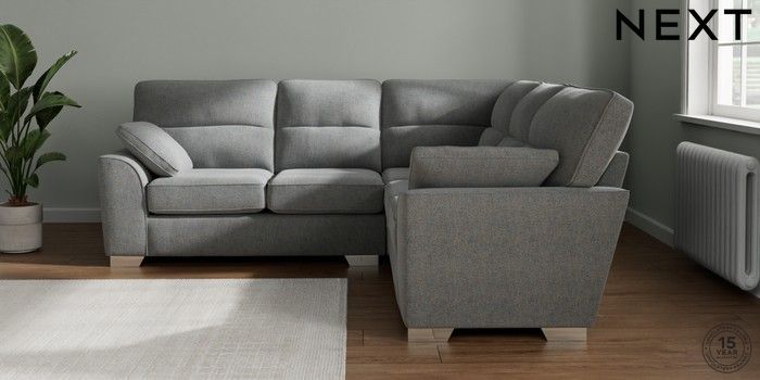 7.2.10 Buy Stamford Highback Medium Corner Sofa - Universal Chunky Marl Mid Grey Large Square Angle - Chrome Metal from the Seasons online shop Click here to use our website with more accessibility support, for example screen readers
