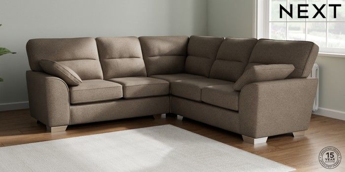 7.2.10 Buy Stamford Highback Medium Corner Sofa - Universal Chunky Weave Dark Natural Large Square Angle - Chrome Metal from the Seasons online shop Click here to use our website with more accessibility support, for example screen readers