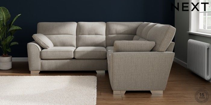 7.2.10 Buy Stamford Highback Medium Corner Sofa - Universal Chunky Weave Dove Grey Large Square Angle - Chrome Metal from the Seasons online shop Click here to use our website with more accessibility support, for example screen readers