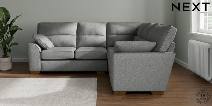 7.2.10 Buy Stamford Highback Medium Corner Sofa - Universal Chunky Weave Mid Grey Large Square Angle - Brushed Brass from the Seasons online shop Click here to use our website with more accessibility support, for example screen readers