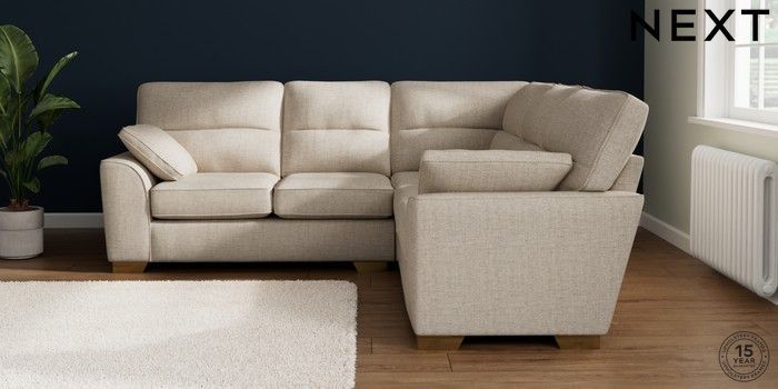 7.2.10 Buy Stamford Highback Medium Corner Sofa - Universal Chunky Weave Mid Natural Large Square Angle - Brushed Brass from the Seasons online shop Click here to use our website with more accessibility support, for example screen readers