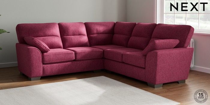 7.2.10 Buy Stamford Highback Medium Corner Sofa - Universal Cotswold Chenille Dark Raspberry Pink Large Square Angle - Gunmetal from the Seasons online shop Click here to use our website with more accessibility support, for example screen readers