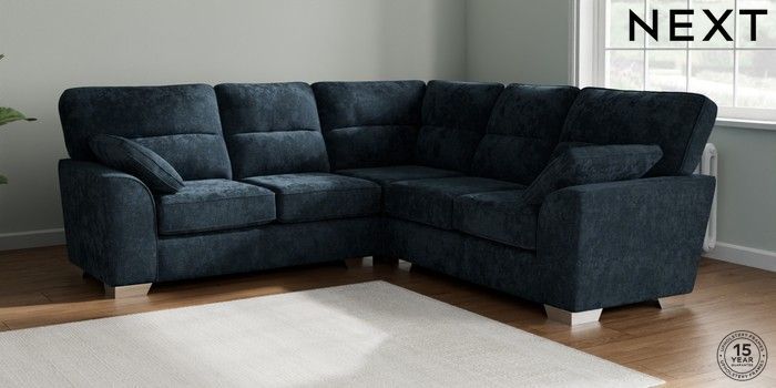 7.2.10 Buy Stamford Highback Medium Corner Sofa - Universal Distressed Velour Midnight Blue Large Square Angle - Chrome Metal from the Seasons online shop Click here to use our website with more accessibility support, for example screen readers