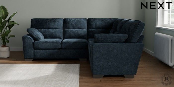 7.2.10 Buy Stamford Highback Medium Corner Sofa - Universal Distressed Velour Midnight Blue Large Square Angle - Gunmetal from the Seasons online shop Click here to use our website with more accessibility support, for example screen readers