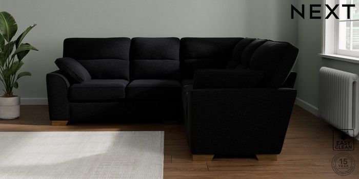 7.2.10 Buy Stamford Highback Medium Corner Sofa - Universal Fine Chenille Easy Clean Black Large Square Angle - Brushed Brass from the Seasons online shop Click here to use our website with more accessibility support, for example screen readers