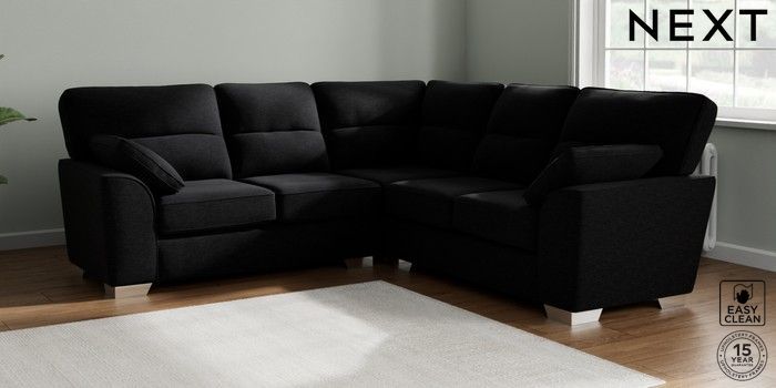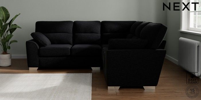 7.2.10 Buy Stamford Highback Medium Corner Sofa - Universal Fine Chenille Easy Clean Black Large Square Angle - Chrome Metal from the Seasons online shop Click here to use our website with more accessibility support, for example screen readers
