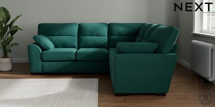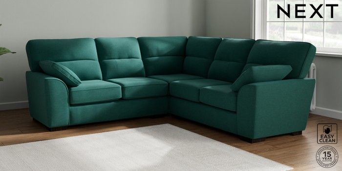 7.2.10 Buy Stamford Highback Medium Corner Sofa - Universal Fine Chenille Easy Clean Dark Juniper Green Large Square Angle - Dark from the Seasons online shop Click here to use our website with more accessibility support, for example screen readers