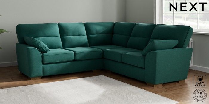 7.2.10 Buy Stamford Highback Medium Corner Sofa - Universal Fine Chenille Easy Clean Dark Juniper Green Large Square Angle - Mid from the Seasons online shop Click here to use our website with more accessibility support, for example screen readers