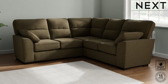 7.2.10 Buy Stamford Highback Medium Corner Sofa - Universal Fine Chenille Easy Clean Dark Moss Green Large Square Angle - Dark from the Seasons online shop Click here to use our website with more accessibility support, for example screen readers