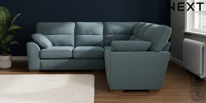 7.2.10 Buy Stamford Highback Medium Corner Sofa - Universal Fine Chenille Easy Clean Mid Blue Large Square Angle - Mid from the Seasons online shop Click here to use our website with more accessibility support, for example screen readers