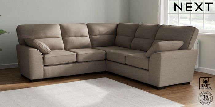 7.2.10 Buy Stamford Highback Medium Corner Sofa - Universal Fine Chenille Easy Clean Mid Taupe Brown Large Square Angle - Dark from the Seasons online shop Click here to use our website with more accessibility support, for example screen readers