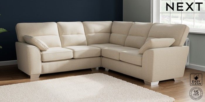7.2.10 Buy Stamford Highback Medium Corner Sofa - Universal Fine Chenille Easy Clean Oyster Large Square Angle - Chrome Metal from the Seasons online shop Click here to use our website with more accessibility support, for example screen readers