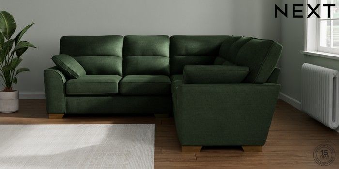 7.2.10 Buy Stamford Highback Medium Corner Sofa - Universal Luxe Chenille Dark Green Large Square Angle - Brushed Brass from the Seasons online shop Click here to use our website with more accessibility support, for example screen readers