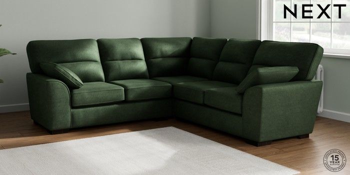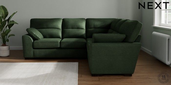 7.2.10 Buy Stamford Highback Medium Corner Sofa - Universal Luxe Chenille Dark Green Large Square Angle - Dark from the Seasons online shop Click here to use our website with more accessibility support, for example screen readers